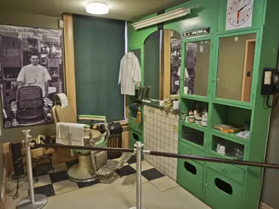 Les McKerral owned several prominent barber shops in Woodstock throughout his lengthy career. His third and final barbershop was once considered one of the foremost barber shops in western Ontario. This micro-exhibit features one of the chairs from the barbershop, complete with tools, awards that belonged to Les, and accessories. It's just like a walk into the past!
